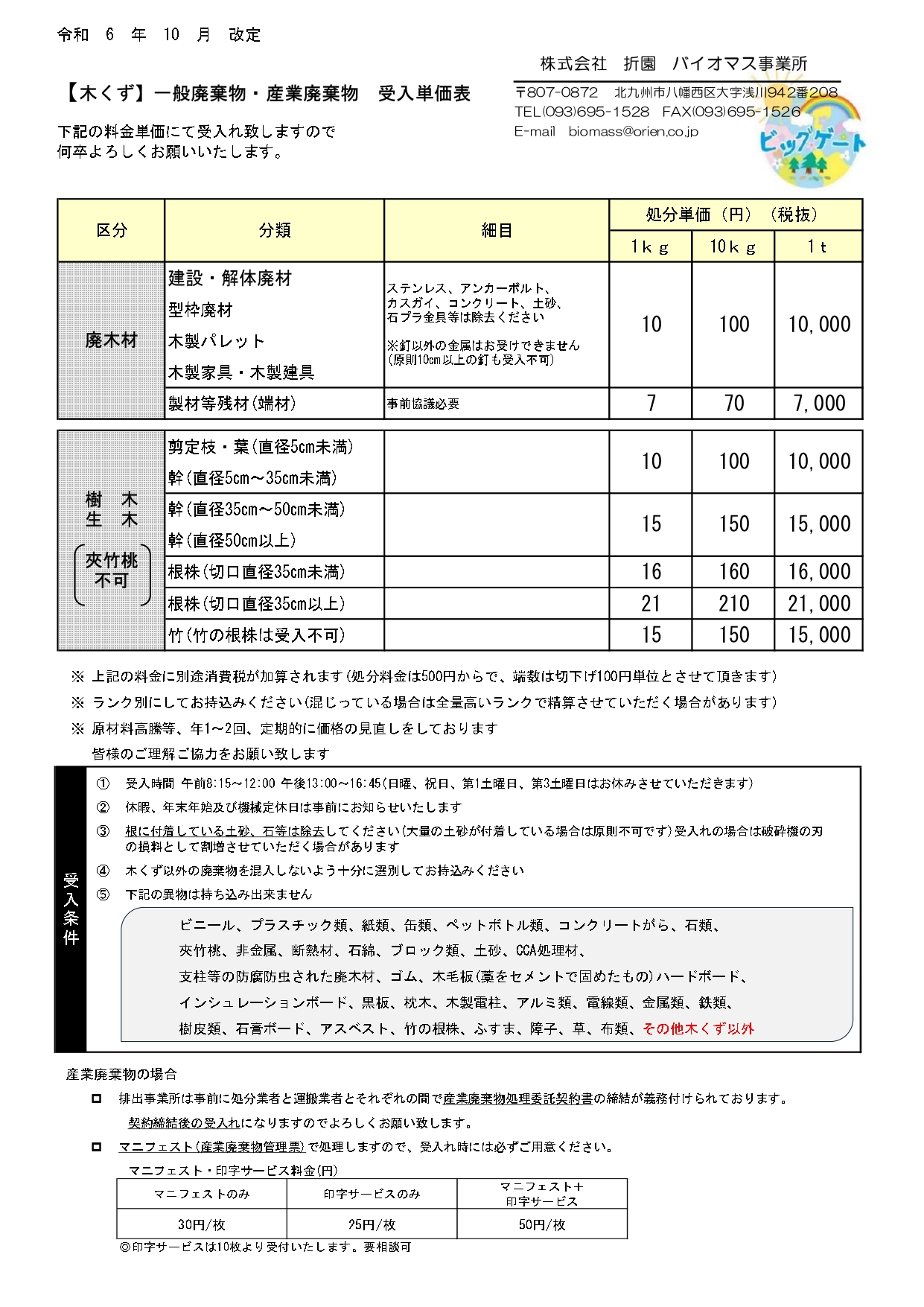 料金表price list 料金表ダウンロードはこちら※PDFファイル マニフェスト印字サービスをご利用のお客様は、Excel作成の記入票をメールさせて頂いております。 お電話にてご連絡頂きますようよろしくお願いします。
